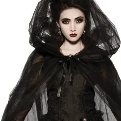 Black Full Length Hooded Cape For Adults