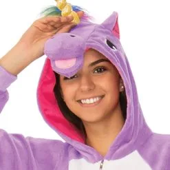 Purple Unicorn Hooded Onesie Costume For Adults
