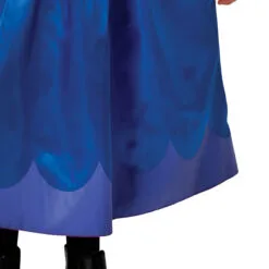 - Bodice is satin with digitally printed character motif and floral designs in glittery patterns plus gold trim