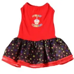 Celebrate your pup’s BARK-day with this cute little Bark-day birthday tutu dress, complete with cake and candle image.