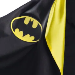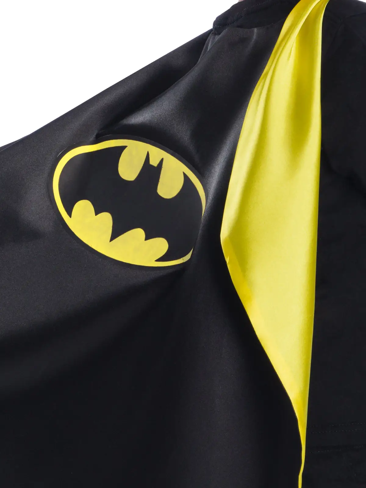 - Cape attaches with velcro at collar and has the iconic Batman logo on the back