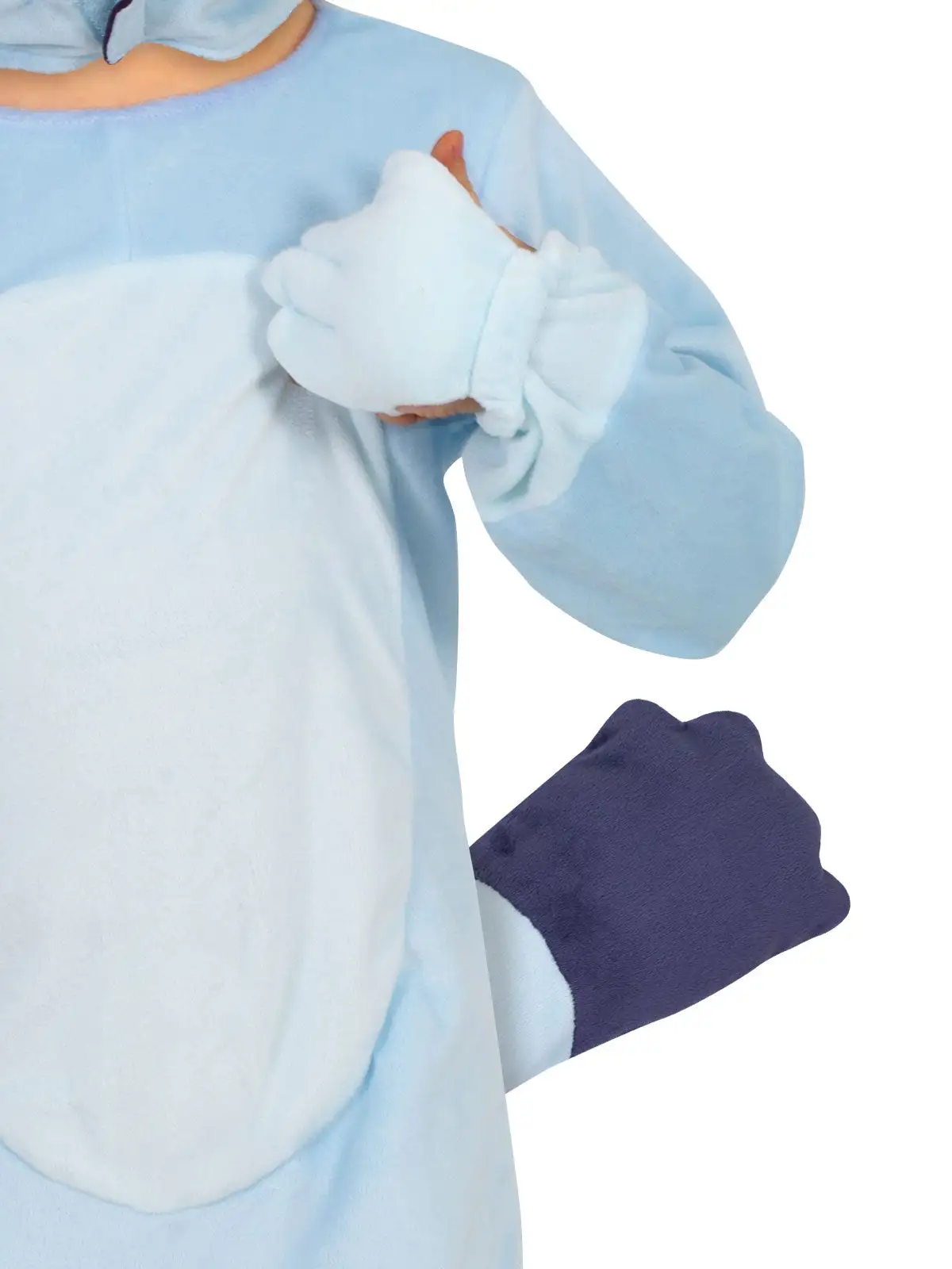 - Premium velour jumpsuit with padded ‘paws’ which sit over hands with elastic straps