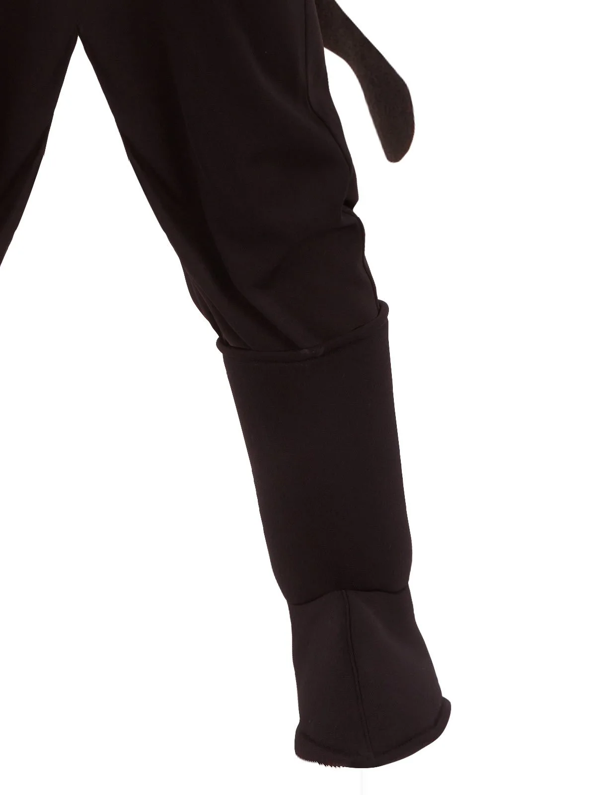 - Jumpsuit features attached boot tops and has velcro closures at rear