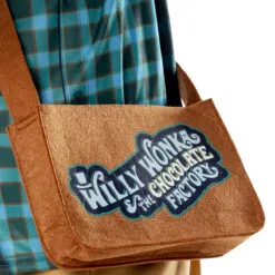 - Felt satchel with ‘Willy Wonka & The Chocolate Factory’ printed on it and a Wonka bar plus golden ticket
