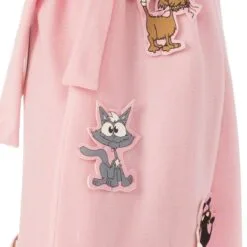 - Polyester dressing gown robe with belt and sewn on felt images of cats