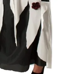 - Dress has white overlay in tattered fabric with rips and tears