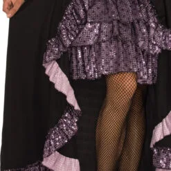 - Saloon style glittery, layered dress with short front and long peplum skirt attached at waist