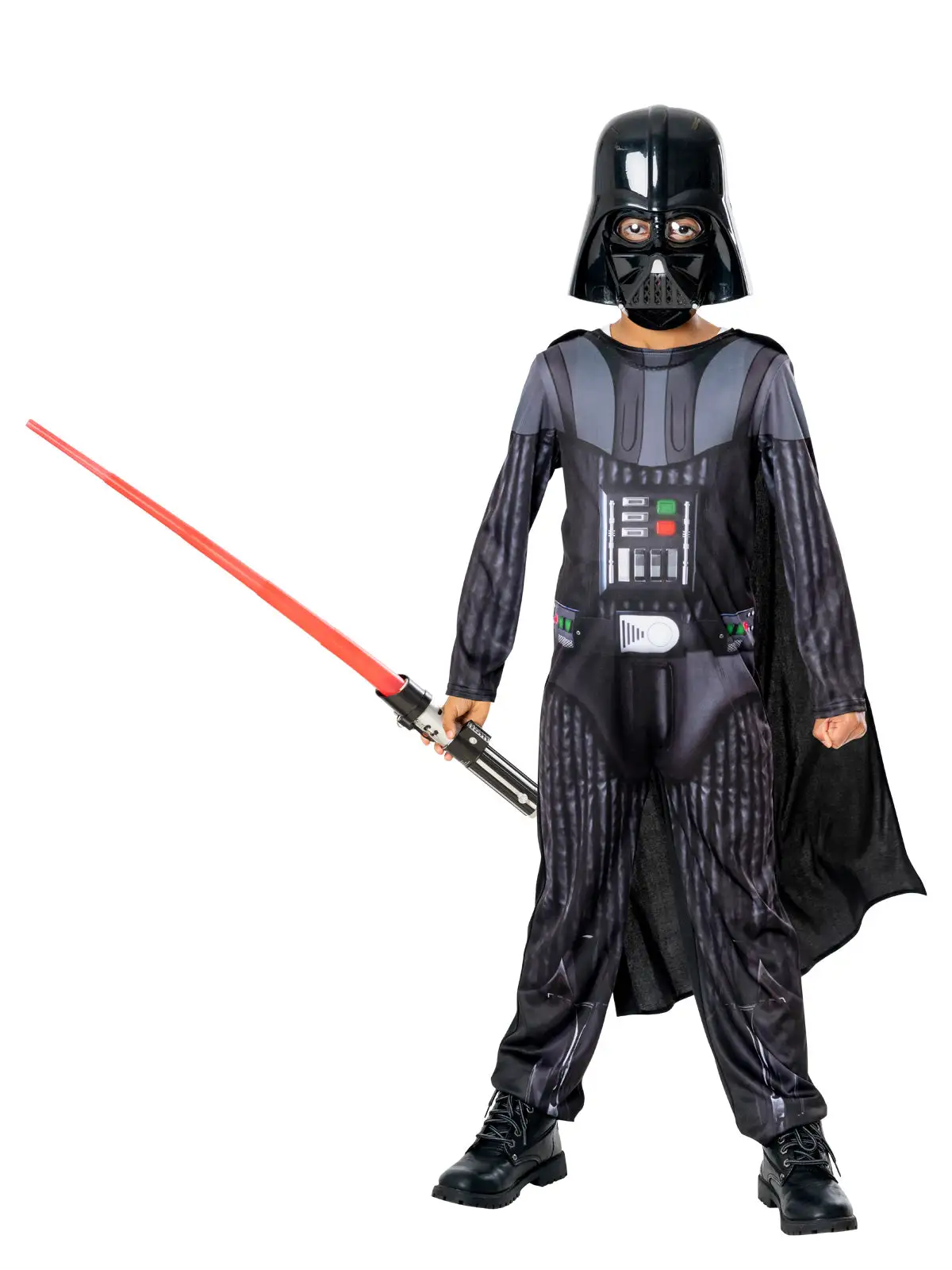 The ultimate villain of the original Star Wars trilogy, Darth Vader was born Anakin Skywalker, a Jedi lured to the dark side by Palpatine. This iconic Lucas Film and Disney anti-hero of the Star Wars series, Darth is father to Luke and Leia and characterised by his black robes, cape, helmet and breathing device. Become the reigning Sith Lord of the Galactic Empire today – and may the force be with you.