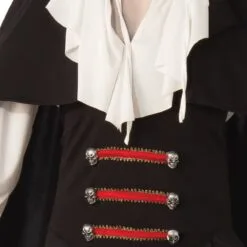 - Attached vest with painted silver skeleton buttons & red satin attachments