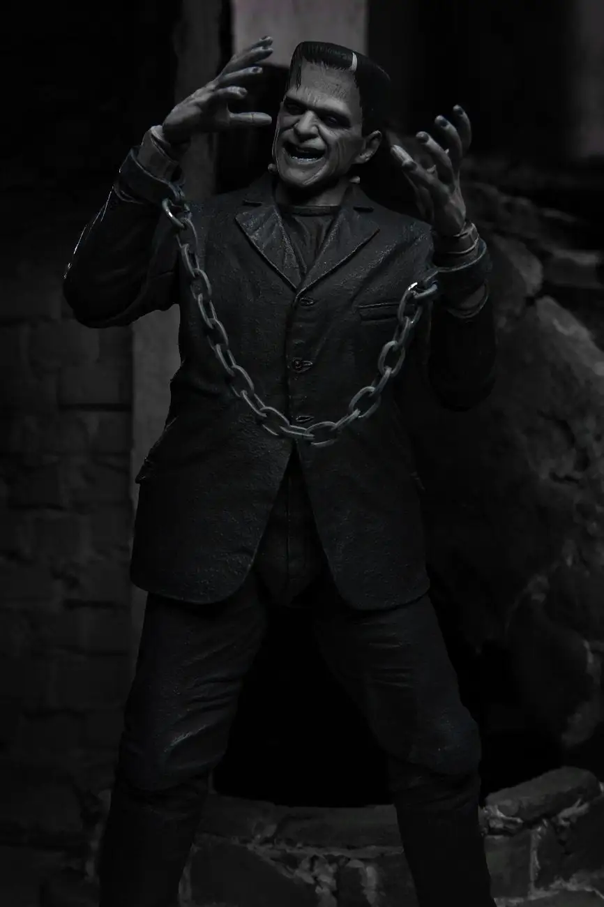 To celebrate the 90th anniversary of the acclaimed silver-screen classic Frankenstein we are excited to announce the triumphant debut of Universal Monsters in its Ultimate action figure line! The sculpt captures Boris Karloff’s poignant portrayal of the misunderstood monster in authentic black-and-white just like the movie.