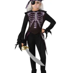 - Purple and black tri-horn shaped headpiece plus eye patch with elastic strap