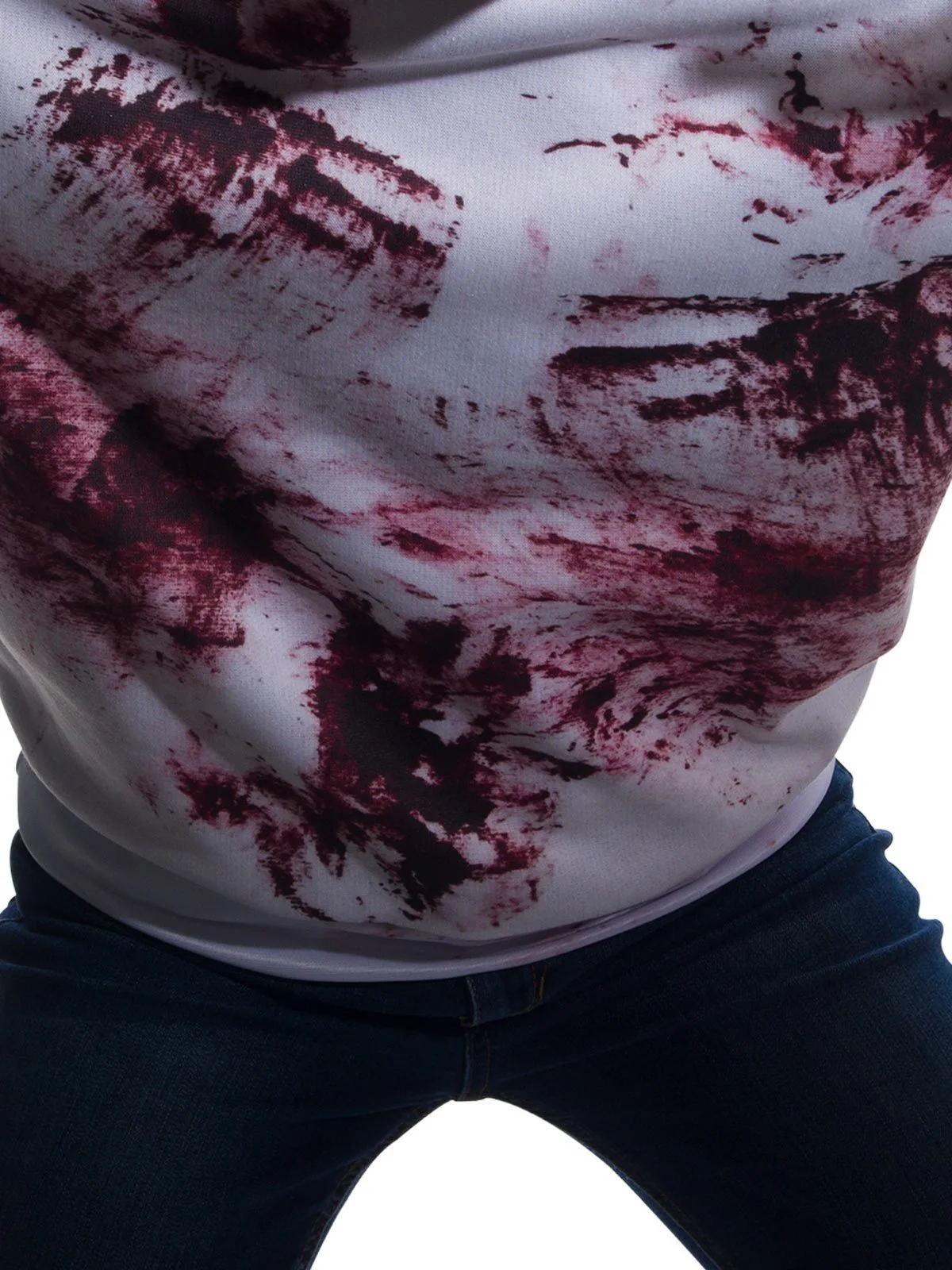 - Polyester hoodie top with printed faux blood splatter on front, back, arms and hood
