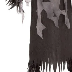 - Full length black hooded robe with jaggered hemline and tattered hood and featuring felt overlay fabric with tears and rips
