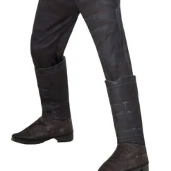 - Jumpsuit with digital printed bodice, foam padded armour, upright collar and attached harness