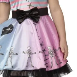 - Shiny satin dress with printed ombre colourway and skeleton print on skirt