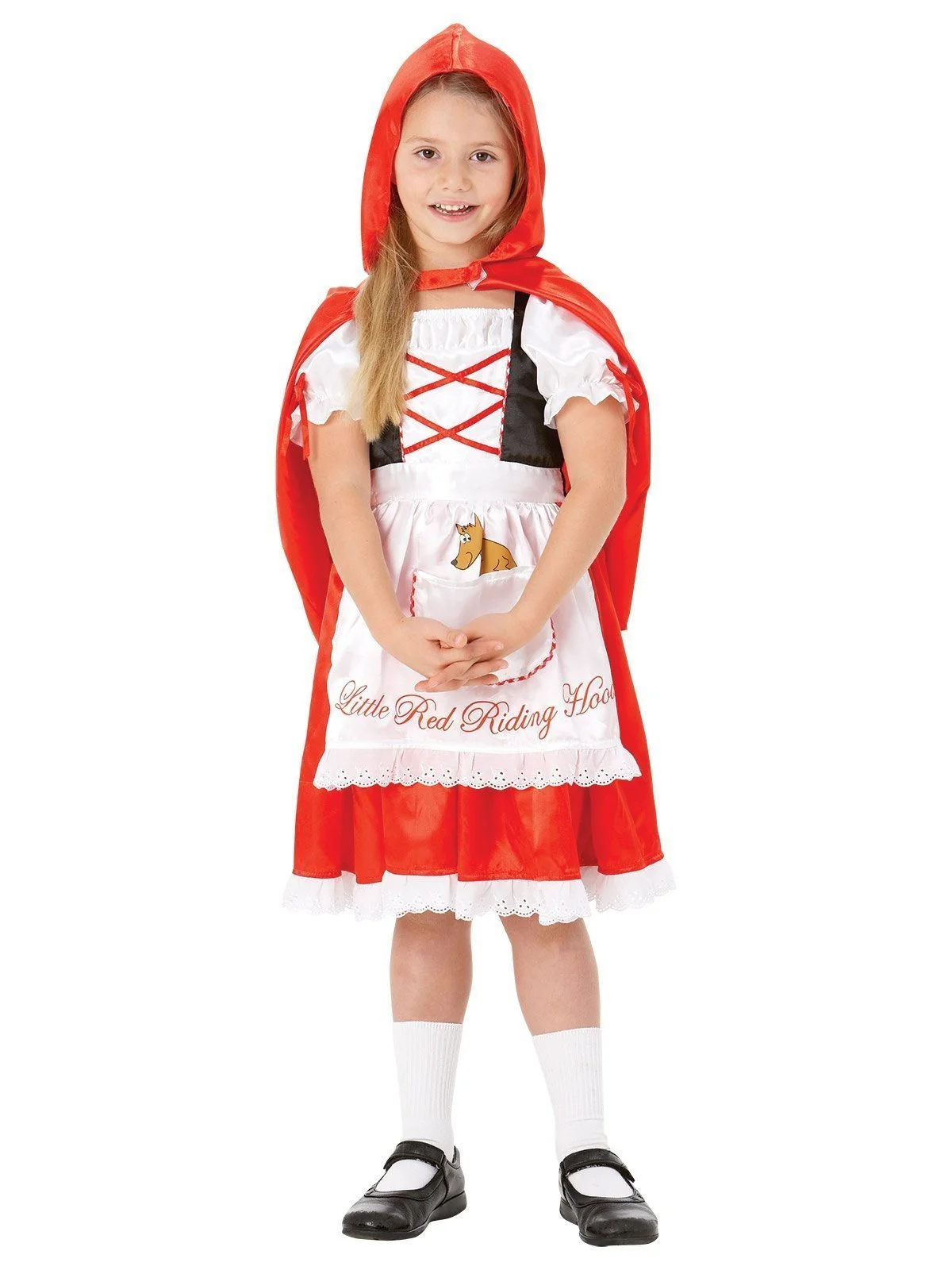 - Satin hooded cape with velcro fasten at neck and attached red bow. Basket, shoes and tights not included