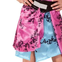 - Satin printed kimono style dress with blue tunic under-layer and attached pink over layer