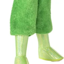 - Fleece all-in-one jumpsuit with full length sleeves and attached glittery green boot tops