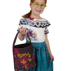 - Open felt fabric satchel with digitally printed Encanto imagery and short carry strap