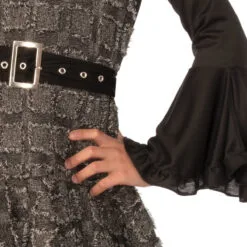 - Fabric belt with silver studded holes and a large silver buckle