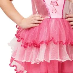 - Metallic and satin bodice featuring laser sequin character motif and taffeta ruffles along the shoulder straps