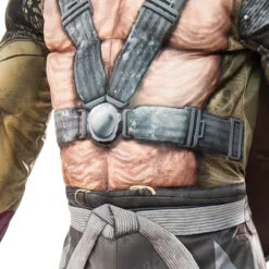 - Digitally printed jumpsuit with fibre filled muscle chest and arms to create bulk