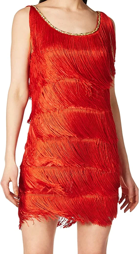 They were called the roaring 20’s as it was a time of prohibition and sometimes even inhibition. Girls would wear flappers like this red Flapper dress, that had the classic layered fringe, with gold sequin trim. The ladies embraced all things that were modern, sexy and extremely fashionable. The very short dresses that exposed her arms and most of her legs, and the cute short, sleek hair.