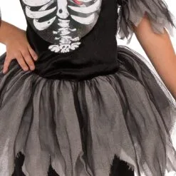 - Dress with skeleton print on the chest and attached ‘torn’ tulle layered tutu skirt plus sheer neckline