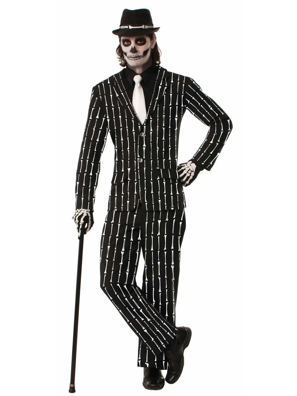 Halloween costume concerns? Fear not, this bone pin striped suit will have you jumping out of your skin this Halloween