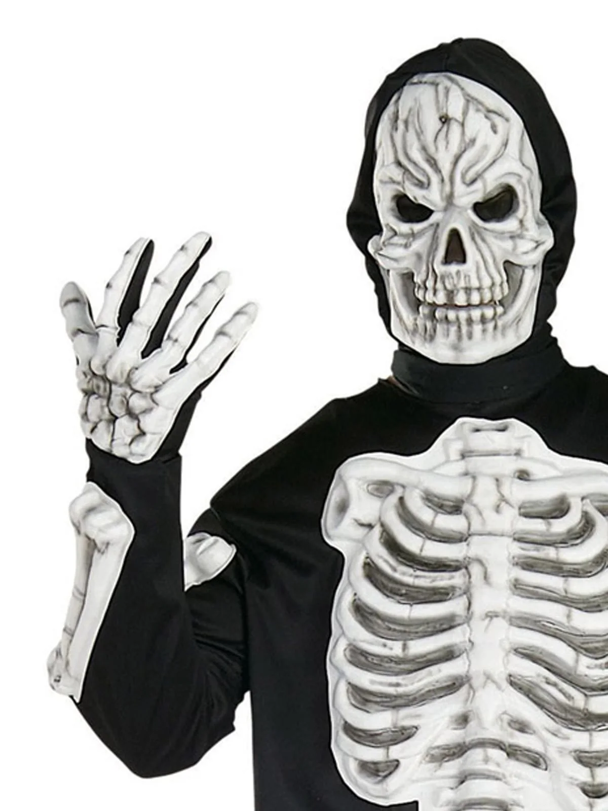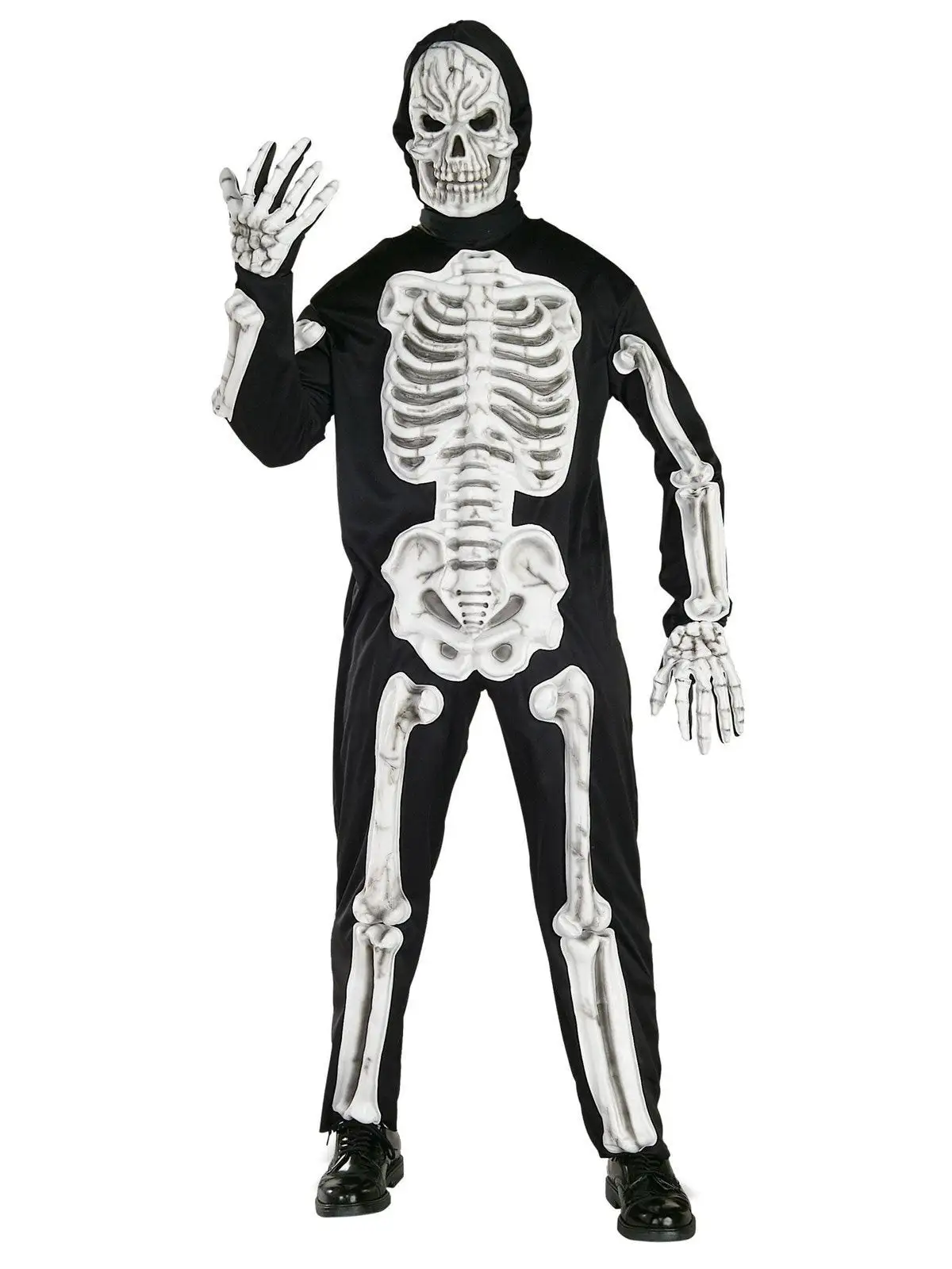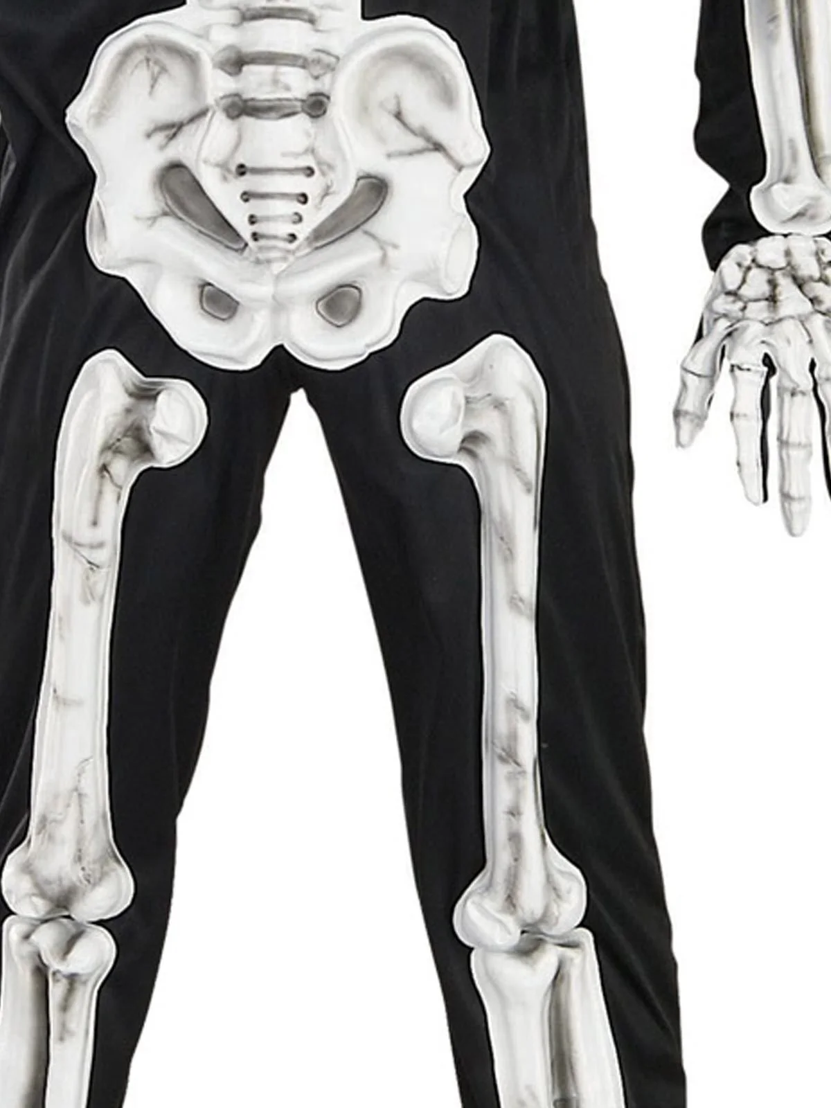 - All in one hooded jumpsuit with 3D moulded bones attached and digitally printed skeleton bones on front