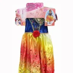 - Satin bodice with gold and red glitter print and gold trimming, plus heart shaped pendant with character image