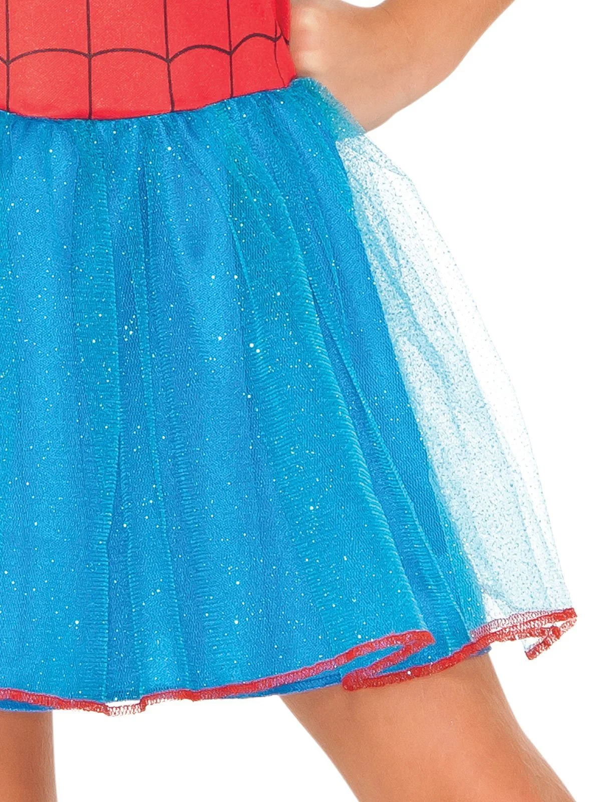 - Tutu dress with digitally printed bodice showcasing the iconic spider emblem and red and blue panels