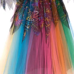 - Dress with rainbow glitter web design on the skirt peplum and bodice panel, and also the tulle sleeves cuffs