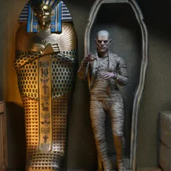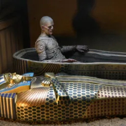 Build even bigger scenes and dioramas with this accessory set for NECA’s Universal Monsters ‘The Mummy’ action figure. The star of the set is the elaborate sarcophagus, which measures over 9” inches tall and has a removable lid with movie accurate deco and intricate printed pattern. A perfect accompaniment to your Mummy Collectable figurines. (Action figure pictured sold separately)