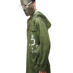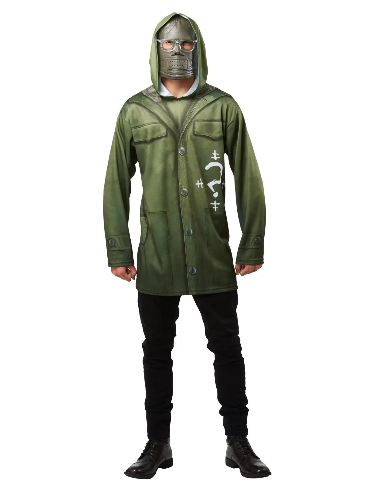 - Hooded, long sleeved hyper-real costume top with digitally printed undershirt and white question mark logo at chest