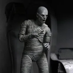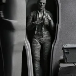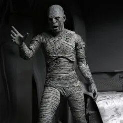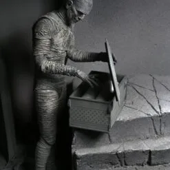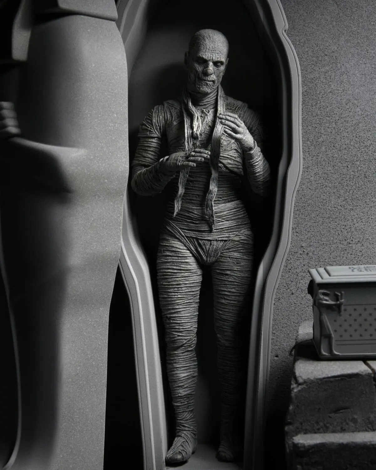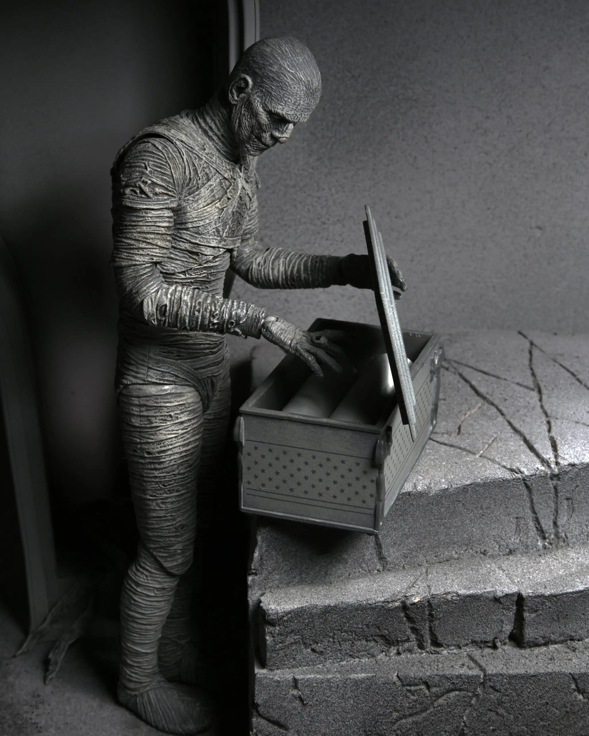 For the 90th anniversary of the extraordinary silver-screen classic, NECA presents The Mummy action figure in authentic black and white. In this Universal Monsters classic of horror, Boris Karloff shines as the ancient Mummy in a tale of love transcending death. The sculpt captures the intricate special effects make up that required eight hours to apply and two hours to remove.