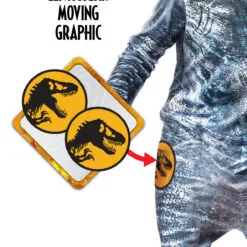 - Trademark Jurassic logo with roaring Dinosaur head is a lenticular logo on the hip, which changes on different angles