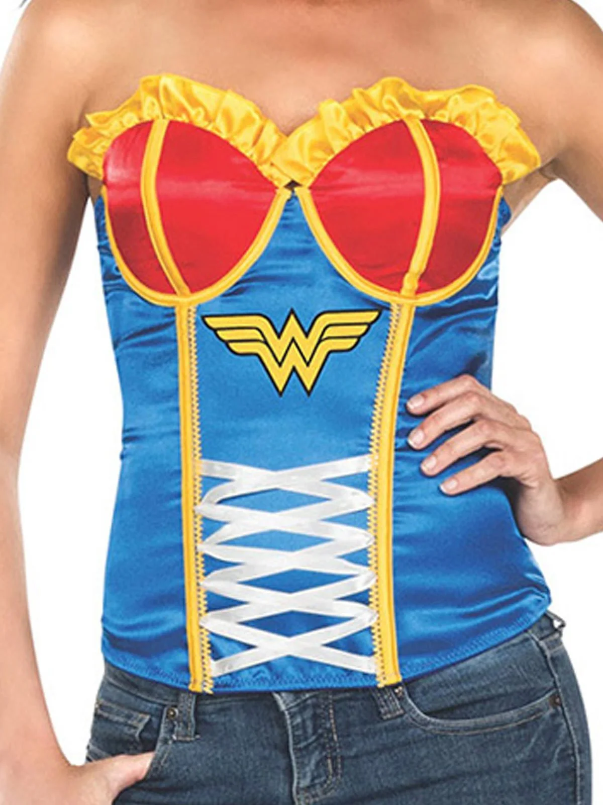 Sleek and sexy, become Wonder Woman in this Corset. Who needs a party? Wear it anywhere!