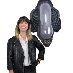 Show off your skills as a hunter with this stunning Alien Xenomorph trophy plaque, which mounts on the wall for an eye-catching piece that is perfect for retail decoration or display at home. The Xenomorph plaque is made of durable foam rubber and latex that is carefully hand painted for realistic detail. It measures over 79cm tall, over 53cm wide, and approximately 43cm deep. Please Note: This wall hanging is a heavy object weighing approximately 5.5kg and we recommend professional installation. You must install this unit to structural elements (2″x4″ wall studs).